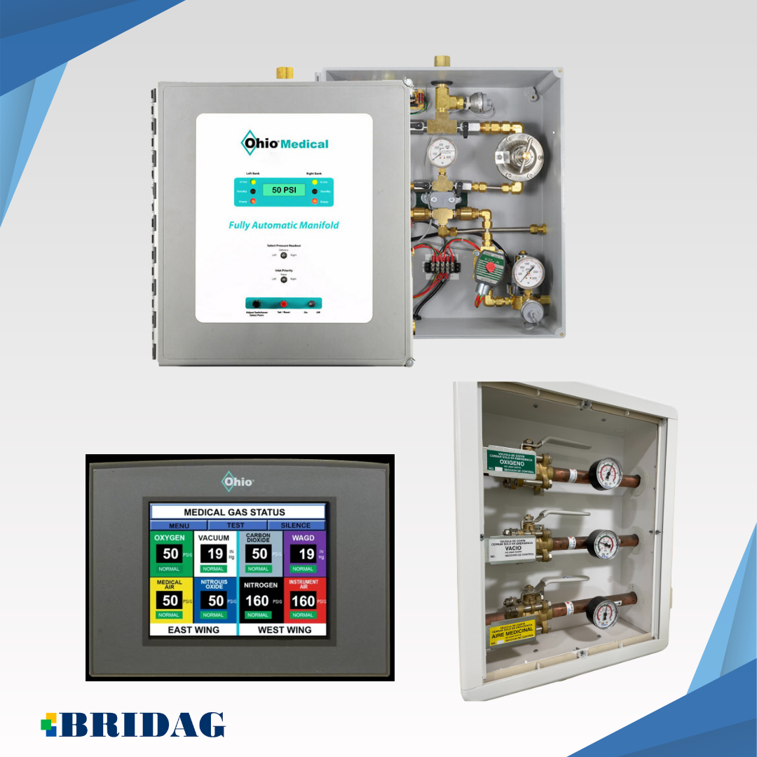 Equipos de control para suministro de Gases Medicinales.Manifold automático, Caja de Válvulas y Alarma de gases